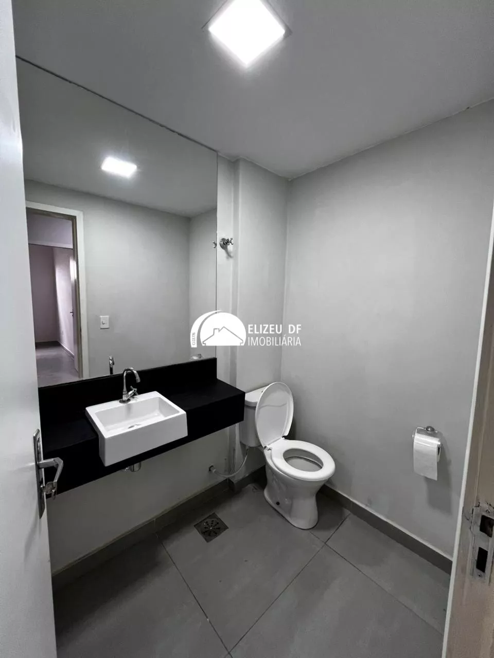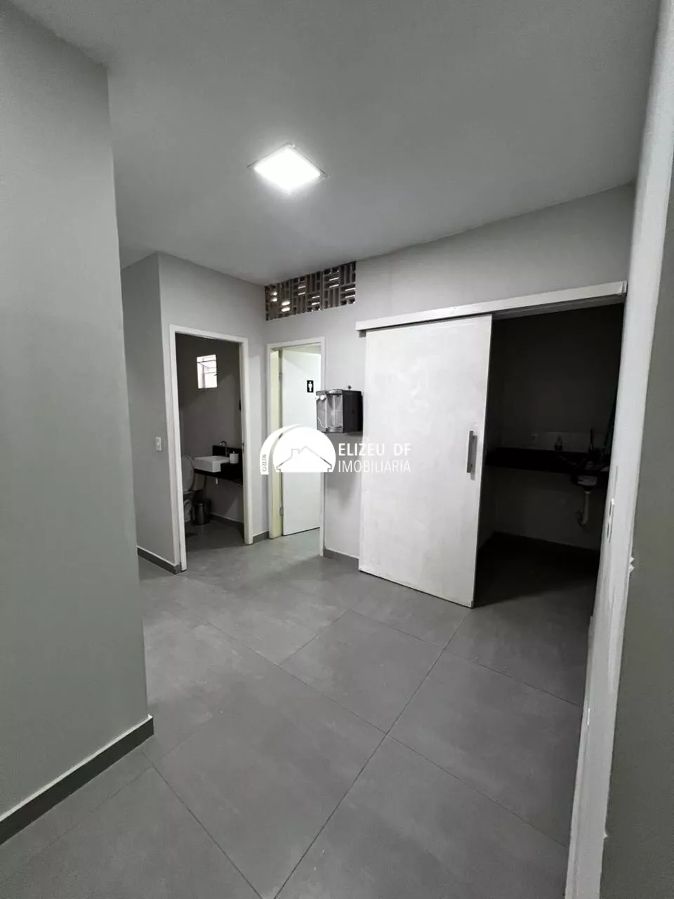 Estrutura: Loja térrea com piso em porcelanato cinza e iluminação em painéis de LED, pronta para uso.